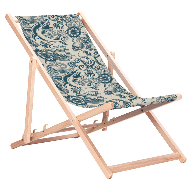 Leżak drewniany klasyczny z nadrukiem - rekiny